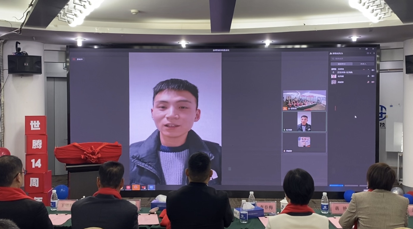 十四年的風(fēng)雨同行,離不開每一位世騰家人的堅守初心與支持陪伴,本次慶典“世騰年度之星”環(huán)節(jié),邀請到了自世騰成立以來歷年入職的優(yōu)秀員工代表進行發(fā)言,各位戰(zhàn)區(qū)同事以線上連線的形式給我們分享自己眼中的世騰。每一位分享者的發(fā)言令人動容,大家回顧了一路走來的點滴與不易,沒有兩位創(chuàng)始人的堅定指引,沒有每一位世騰人的奉獻與堅持,就沒有世騰今天的發(fā)展。大家在世騰這個平臺上實現(xiàn)了自己的夢想,都為成為一名世騰人感到無限驕傲。
